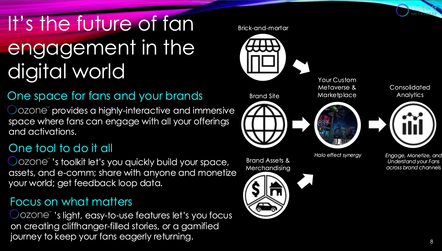 This visual captures the heart of our Ozone approach: merging physical, digital, and immersive brand touchpoints into one seamless ecosystem. From brick-and-mortar to metaverse activations, Ozone empowers brands to build interactive fan spaces, launch merch-integrated storylines, and extract real-time insights with consolidated analytics. It’s about turning every click, visit, and moment into a connected narrative—gamified, monetizable, and unforgettable.